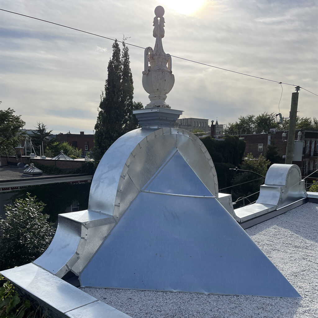 Au-delà de son aspect esthétique, la corniche protège la maçonnerie en déviant l’eau de pluie. Dans un climat marqué par 90 à 120 cycles de gel-dégel par année, les éléments métalliques sont exposés à la corrosion, au relâchement des fixations et aux risques de détachement.
